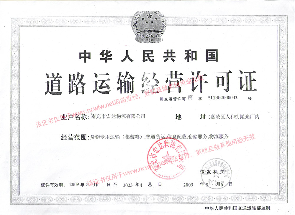 南充物流網(wǎng)(www.sdhuaduan.com) 南充市宏達物流有限公司道路運輸經(jīng)營許可證