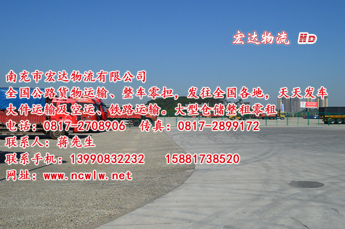 國內(nèi)公路貨物運輸、整車、零擔、大件運輸及空運、鐵路運輸。 專線:南充-廣州、深圳、浙江、上海、國內(nèi)每天發(fā)車往返。3-4天到達目的地。手機:13990832232 15881738520